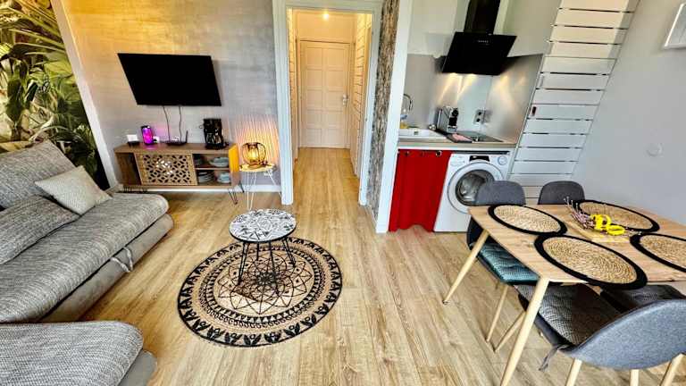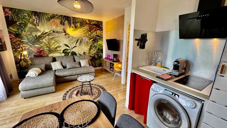 Das klimatisierte Apartment im BIKINI & MARTINI Résidence MANGANAO Plage & Piscine privée verfügt über ein Schlafzimmer, ein Wohnzimmer und eine voll ausgestattete Küchenzeile mit einem Kühlschrank und einer Kaffeemaschine. Das Apartment bietet zudem ein Badezimmer mit einer Dusche. Handtücher und Bettwäsche werden gestellt.