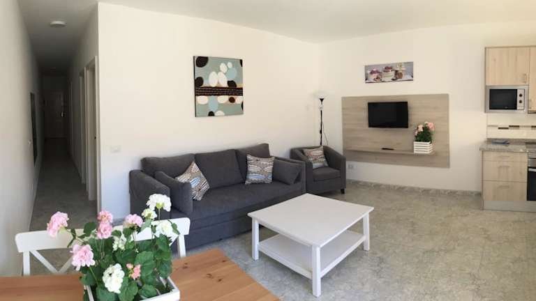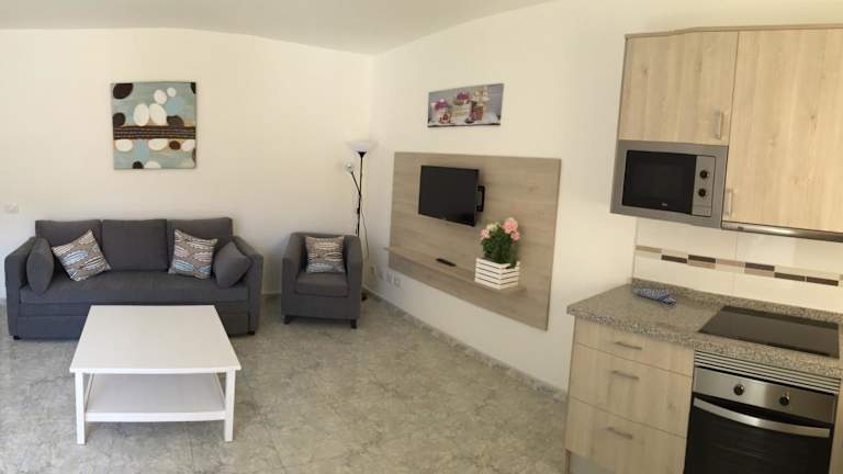 Die Unterkunft befindet sich in Puerto de Mogán, in unmittelbarer Nähe zur Playa de Mogán. Der Golfplatz Anfi Tauro liegt etwa 9 km entfernt. Das Einkaufszentrum Yumbo Centrum ist 25 km von der Ferienwohnung entfernt, ebenso wie der Wasserpark Aqualand Maspalomas. Der nächstgelegene Flughafen ist der Flughafen Gran Canaria, der sich 50 km entfernt befindet.