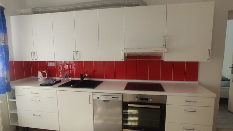 Die Ferienwohnung umfasst zwei Schlafzimmer, ein Flachbild-TV mit Kabelkanälen sowie eine voll ausgestattete Küche mit Kühlschrank, Geschirrspüler, Waschmaschine, Ofen und Mikrowelle. Handtücher und Bettwäsche werden bereitgestellt. Die Unterkunft bietet familienfreundliche Zimmer und Brettspiele/Puzzles zur Unterhaltung.