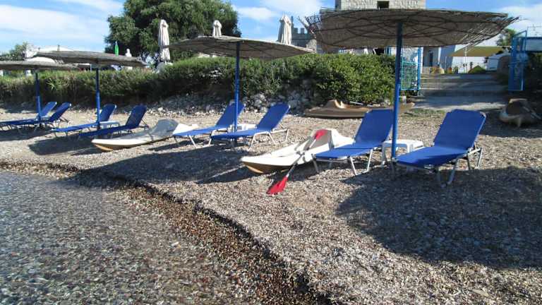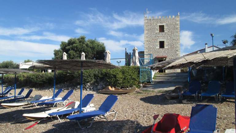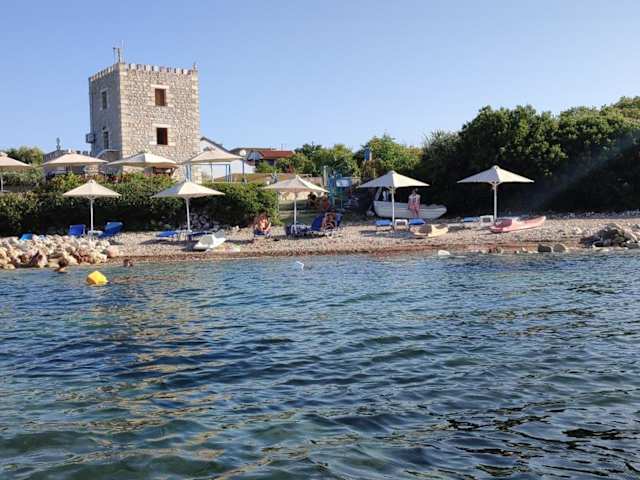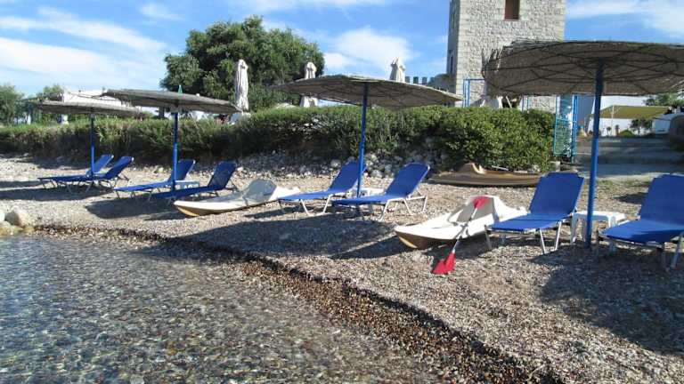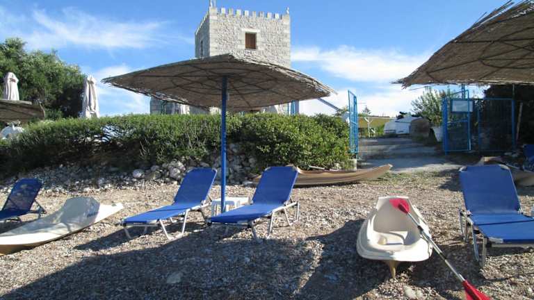 Jeder Bungalow umfasst zwei Schlafzimmer, eine voll ausgestattete Küche, einen Essbereich sowie ein Wohnzimmer mit einem Kamin. Der große überdachte Balkon bietet eine Aussicht auf den Messenischen Golf und lädt zum Entspannen ein.
