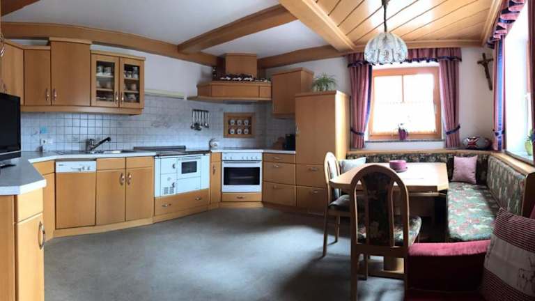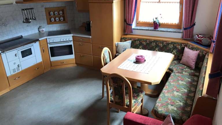 Das Apartment im Biobergbauernhof Bergzeit bietet ein komfortables Schlafzimmer und ein Badezimmer. Bettwäsche und Handtücher sind vorhanden. Entspannen Sie sich im gemütlichen Wohnbereich mit einem Flachbild-Sat-TV und genießen Sie Ihre Mahlzeiten im Essbereich. Die voll ausgestattete Küche bietet Ihnen die Möglichkeit, Ihre eigenen Mahlzeiten zuzubereiten. Von der Terrasse aus haben Sie einen atemberaubenden Blick auf die Berge.