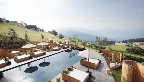 Der Sommer in Meransen ist vielfältig. Blühende Almwiesen, herausfordernde Gipfel, klare Seen und ein vielfältiges Sportangebot von Mitte Mai bis Anfang November. Der Einstieg zu Wanderungen und Bergtouren unterschiedlichster Länge und Schwierigkeitsgrade beginnt direkt vor dem Boutique Biohotel Gitschberg. Verschneite Wälder, Schneehänge und Sonnenschein: Wer den Winter auf entspannte Weise erleben will, ist in Meransen genau richtig. Das Skigebiet Gitschberg Jochtal wartet von Anfang Dezember bis Ostern mit 15 Aufstiegsanlagen und 55 schneesicheren Pistenkilometern auf. Die moderne 8er-Kabinenbahn ins Skigebiet startet nur 300 Meter vom Boutique Biohotel Gitschberg entfernt. Hoch oben auf 2.500 Metern bleiben Hektik und überfülltes Skitreiben an den Liften aus. Panorama-Bergpool Schwebend, leicht und frei. Fast schon den Horizont berührend. So fühlt es sich an, wenn Sie in den Panorama-BERGPOOL eintauchen. Herrlich fein und nachhaltig beheizt. Es ist das pure Sein. Inmitten von kraftvollem Bergquellwasser. Ein Geschenk, das tief berührt. Im Innen und Außen. Die Grenzen verlieren sich, der Endlosblick über die Dolomiten wird weit. Und das Lichtspiel am Himmel zum Naturkino. 1.400 Meter über dem Alltag.