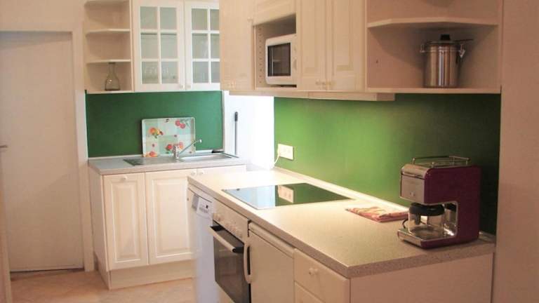 Die Ferienwohnung ist mit einer voll ausgestatteten Küche ausgestattet, die einen Kühlschrank und eine Kaffeemaschine umfasst. Handtücher und Bettwäsche werden zur Verfügung gestellt.
