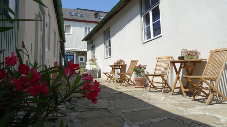 Unser Haus liegt im Ortskern von Kritzendorf, 5 Min. zu Fuß zum Bahnhof und zum Donauradweg. Öffentlich sowie auch mit dem Auto fahren Sie 15 Minuten nach Wien. Die S-Bahn fährt alle 30 Minuten nach Wien zur U-Bahn Station und Park&Ride. Direkt hinterm Haus geht es durch den Weingarten in den Wienerwald für ausgedehnte Spaziergänge. In unmittelbarer Nähe finden Sie auch • den Auwald an der Donau, Radverleih, Wanderwege, Mountainbike Strecken, • Reitstall, Tennis, Sportzentrum, Hallenbad, • Stift Klosterneuburg (Führungen, Konzerte, Ausstellungen, Vinothek, Cafe, Restaurant), Museum Essl und Art Brut Museum Gugging. Donauradweg, Strombad Kritzendorf, Bahnhof, Bus, Friseur, Massage, Supermarkt und Heurigenlokale sind zu Fuß erreichbar.
