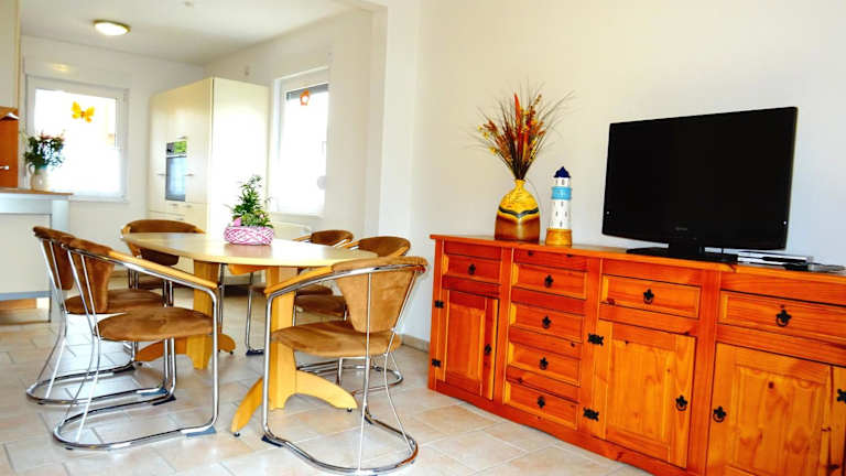 Das Ferienhaus Birkenstraße 6j verfügt über eine gut ausgestattete Küche mit Kühlschrank, Geschirrspüler, Backofen, Kaffeemaschine und Wasserkocher. Dies ermöglicht es den Gästen, ihre eigenen Mahlzeiten zuzubereiten und den Komfort eines eigenen Zuhauses zu genießen. Die Terrasse bietet zudem einen schönen Platz im Freien, um die frische Luft und die Ruhe der Umgebung zu genießen.