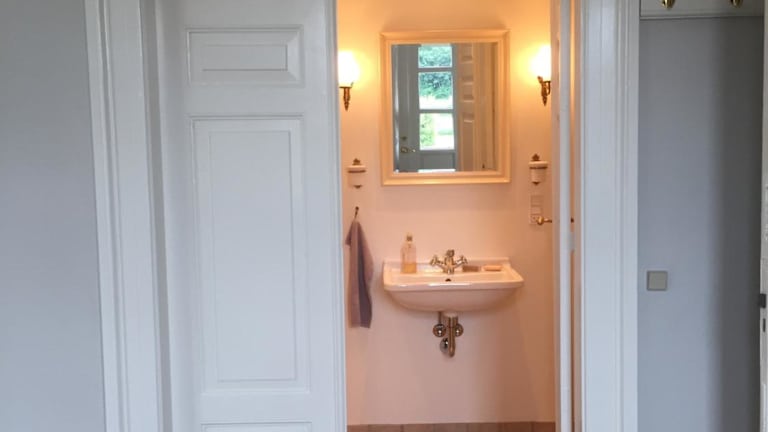 Das helle Familienzimmer im Birkum BB ist geschmackvoll eingerichtet und verfügt über original Holzböden. Zur Ausstattung gehören ein Flachbild-TV, ein Kühlschrank sowie Tee- und Kaffeezubehör. Eine kleine Minibar steht Ihnen ebenfalls zur Verfügung. Das Zimmer verfügt über einen eigenen Eingang und ein eigenes Bad. Bettwäsche und Handtücher werden bereitgestellt, damit Sie sich rundum wohl fühlen können.