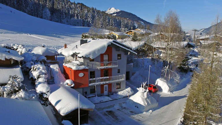 Das Steinberghaus liegt am Ortsrand von Leogang mit direktem Zugang zur Skipiste.