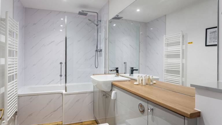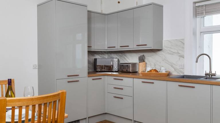 Das Ferienhaus verfügt über zwei Schlafzimmer, ein Wohnzimmer sowie eine gut ausgestattete Küche, die mit einem Kühlschrank und einem Geschirrspüler ausgestattet ist. Handtücher und Bettwäsche werden bereitgestellt.