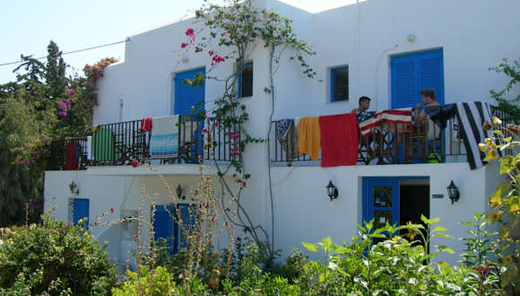 Die Pension Bizas befindet sich in einer privilegierten Lage mit Blick auf die Bucht von Parikia und die Ägäis. Nur wenige Gehminuten entfernt sind zahlreiche Cafés und Restaurants zu finden. Der Hafen von Parikia sowie das Zentrum des Nachtlebens sind in etwa 10 Minuten zu Fuß erreichbar.
