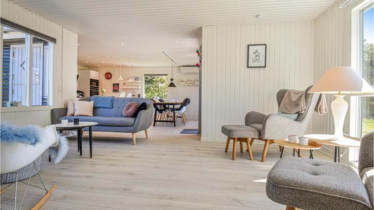 Das Blåbærhuset befindet sich in Søndervig, nur 50 km entfernt vom Jyllands Park Zoo und direkt am Strand.