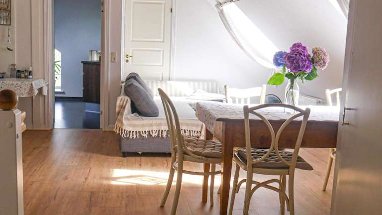Die Ferienwohnung beinhaltet drei Schlafzimmer sowie ein Wohnzimmer und eine komplett ausgestattete Küchenzeile, die mit einem Kühlschrank und einer Kaffeemaschine ausgestattet ist. Die Badezimmer sind mit einer Dusche und einem Haartrockner ausgestattet. Handtücher und Bettwäsche werden bereitgestellt.