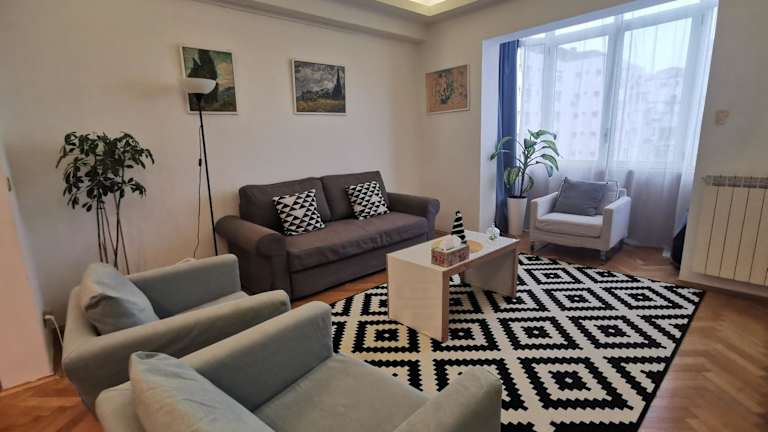 Die Black and White Apartments befinden sich im Zentrum von Bukarest, nur wenige Gehminuten vom Bukarester Nationaltheater TNB, dem Platz der Revolution und dem Nationalen Kunstmuseum von Rumänien entfernt. In der Nähe finden Sie auch beliebte Sehenswürdigkeiten wie die Stavropoleos-Kirche, die Cişmigiu-Gärten und die Patriarchalische Kathedrale. Der Flughafen Băneasa ist nur 8 km entfernt, so dass Sie bequem an- und abreisen können.