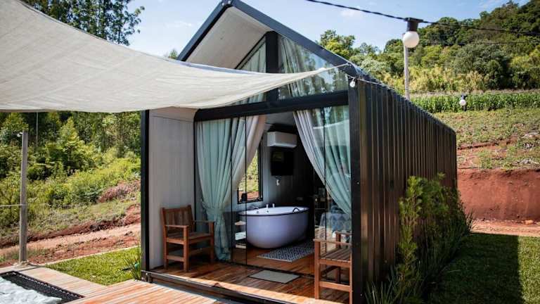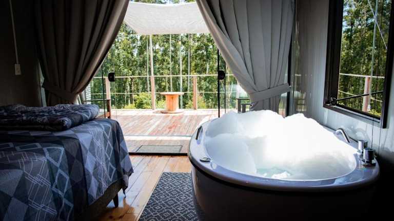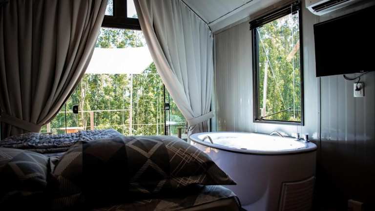 Das Chalet in der Black Cabana ist klimatisiert und bietet ein Schlafzimmer sowie ein Badezimmer, das mit einem Whirlpool und einer Badewanne ausgestattet ist. Des Weiteren ist eine Küche vorhanden.