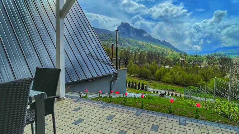 Das Black & White Panoramic bietet eine komfortable Unterkunft mit atemberaubendem Bergblick in der Nähe des Salzbergwerks Turda. Das Chalet verfügt über eine Terrasse, einen Balkon, einen Garten und Grillmöglichkeiten. Mit kostenfreiem WLAN und Privatparkplätzen bietet das klimatisierte Chalet alle Annehmlichkeiten für einen entspannten Aufenthalt. Die voll ausgestattete Küche, die geräumigen Schlafzimmer und die luxuriösen Badezimmer machen dieses Chalet zu einem perfekten Rückzugsort. Erkunden Sie die Umgebung und besuchen Sie historische Stätten wie das Potaissa Roman Castrum oder den Adrenalin Park Cluj.