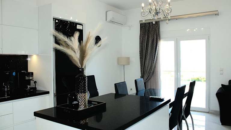 Das Apartment im BLACK & WHITE SeaSide House Kalamia verfügt über 3 Schlafzimmer und 2 Badezimmer. Es bietet Platz für eine große Gruppe oder eine Familie, die gemeinsam reist. Die Unterkunft ist mit Bettwäsche, Handtüchern und einem Flachbild-TV ausgestattet. Es gibt einen Essbereich und eine voll ausgestattete Küche, in der Sie Ihre eigenen Mahlzeiten zubereiten können. Genießen Sie den Blick auf das Meer vom Balkon aus und lassen Sie sich von der Schönheit der Umgebung verzaubern.
