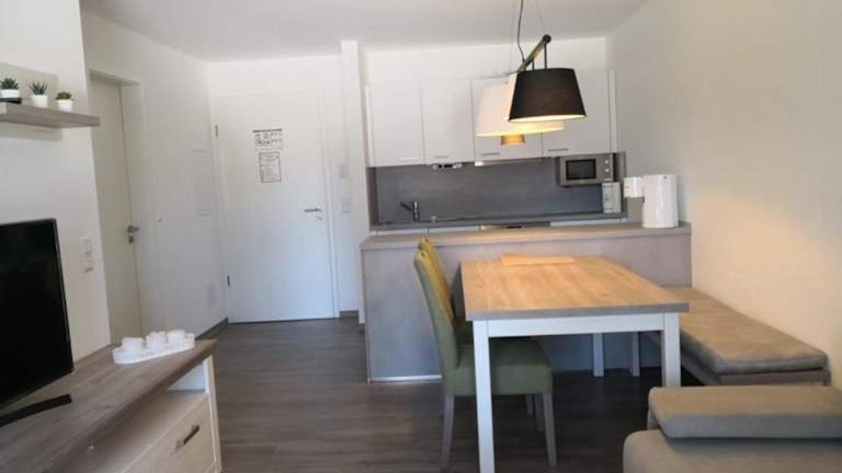 Die Ferienwohnung bietet eine voll ausgestattete Küche mit Kühlschrank, Geschirrspüler, Ofen, Kaffeemaschine und Wasserkocher. Zudem ist die Unterkunft mit einem Flachbild-TV ausgestattet.