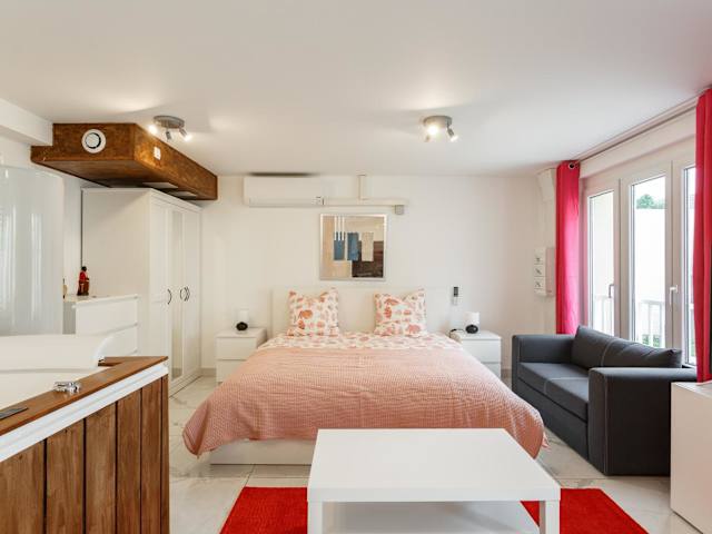 Die Ferienwohnung besteht aus einem klimatisierten Schlafzimmer mit einem separaten Badezimmer, das mit einem Bidet, einer Badewanne oder Dusche und einem Haartrockner ausgestattet ist. Handtücher und Bettwäsche können gegen Aufpreis bereitgestellt werden.
