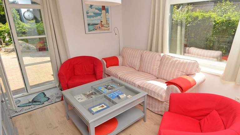 Das Ferienhaus im Blauen Strandhaus Sellin verfügt über 3 Schlafzimmer, ein Wohnzimmer, einen Flachbild-TV und eine voll ausgestattete Küche mit Kühlschrank und Backofen. Das Bad ist mit einer Dusche ausgestattet. Handtücher und Bettwäsche können gegen Aufpreis zur Verfügung gestellt werden. Genießen Sie den Komfort einer eigenen Terrasse und den Blick auf den Garten.