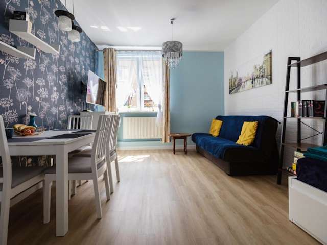 Das Błękitny Apartament in Bytom ist eine komfortable Unterkunft mit kostenfreiem WLAN und einem atemberaubenden Stadtblick. Hier können Sie Ihren Aufenthalt in vollen Zügen genießen und die Privatparkplätze kostenlos nutzen. Die Umgebung bietet eine Vielzahl von Aktivitäten wie Wandern und Tennis, sodass für jeden Geschmack etwas dabei ist. Das Apartment selbst verfügt über ein gemütliches Schlafzimmer, einen Flachbild-TV und eine voll ausgestattete Küche mit Kühlschrank und Backofen. Eine Waschmaschine ist ebenfalls vorhanden. Das Badezimmer ist mit einer Badewanne oder Dusche ausgestattet und Handtücher sowie Bettwäsche werden gestellt. In der Nähe befinden sich das Stadion Śląski und das Stadion Ruch Chorzów. Der Flughafen Kattowitz ist nur 24 km entfernt.