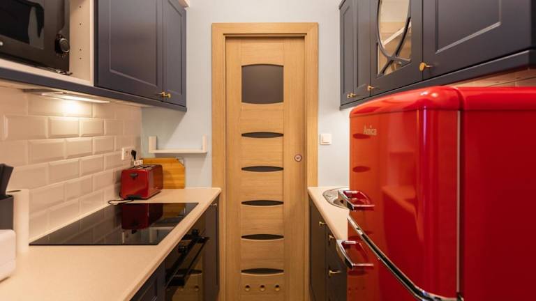 Im Błękitny Apartament können Sie Ihre eigenen Mahlzeiten zubereiten, da die Küche mit allen notwendigen Geräten ausgestattet ist. Alternativ können Sie auch in den nahegelegenen Restaurants speisen und die lokale Küche genießen.