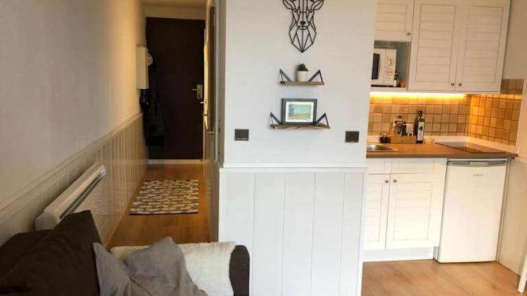 Bleuets II ist eine Ferienwohnung, die mit einem Garten ausgestattet ist. Sie bietet einen Blick auf die umliegenden Berge und ermöglicht den Zugang zu einer voll ausgestatteten Küche.