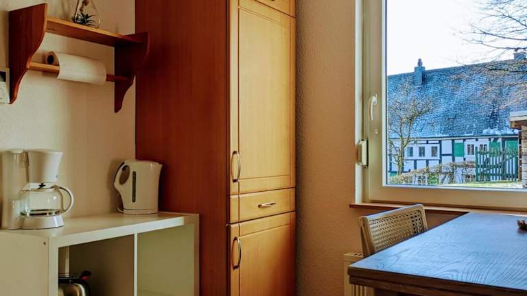 Die Ferienwohnung verfügt über eine voll ausgestattete Küche mit Kühlschrank, Geschirrspüler, Waschmaschine, Ofen und Mikrowelle, ermöglicht somit die Selbstverpflegung der Gäste.