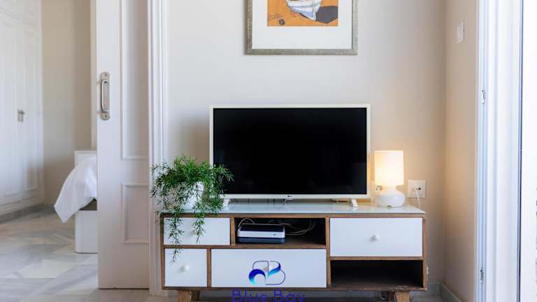 Die Ferienwohnung besteht aus einem Schlafzimmer, einem Wohnzimmer sowie einer voll ausgestatteten Küche, die über einen Kühlschrank und eine Kaffeemaschine verfügt. Zudem beinhaltet die Ausstattung 1 Badezimmer mit Dusche und Haartrockner. Bettwäsche und Handtücher werden bereitgestellt. Die Unterkunft ist klimatisiert und bietet Meerblick.