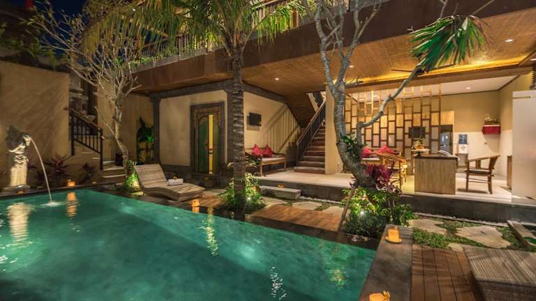 Das Bliss Ubud Abangan ist eine wunderbare Unterkunft in Ubud, die Ihnen einen erholsamen und angenehmen Aufenthalt bietet. Genießen Sie den Blick auf den Garten, den Außenpool und die verschiedenen Annehmlichkeiten, die das Hotel zu bieten hat. Das kontinentale Frühstück oder das Frühstück à la carte sorgt für einen guten Start in den Tag. Nutzen Sie auch die Fahrrad- und Autovermietung, um die Umgebung zu erkunden. Beliebte Sehenswürdigkeiten wie der Saraswati-Tempel, das Blanco-Museum und der Ubud-Palast befinden sich in der Nähe. Lassen Sie sich von einem kostenpflichtigen Flughafentransfer zum Flughafen Denpasar verwöhnen.