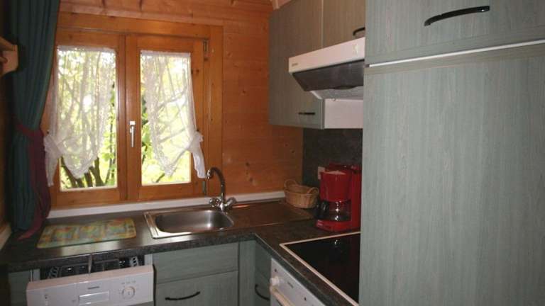 In den Blockhäusern steht eine voll ausgestattete Küche zur Verfügung, die mit Kühlschrank, Geschirrspüler, Ofen, Herdplatte, Mikrowelle, Toaster, Kaffeemaschine und Wasserkocher ausgestattet ist.