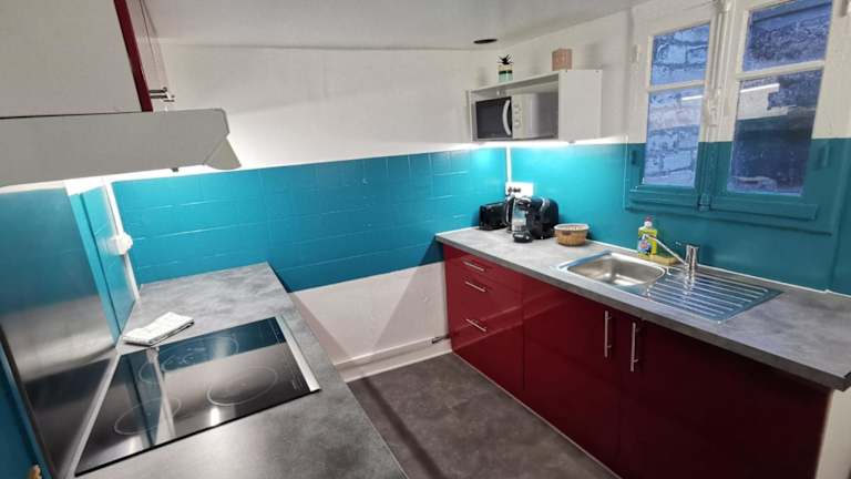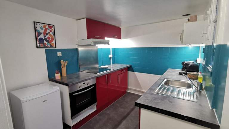 Die Ferienwohnung verfügt über ein Schlafzimmer und eine ausgestattete Küche mit Kühlschrank und Ofen. Ein Flachbild-TV, ein Sitzbereich sowie ein Badezimmer mit Dusche gehören ebenfalls zur Ausstattung.
