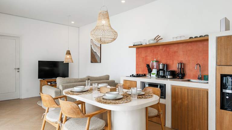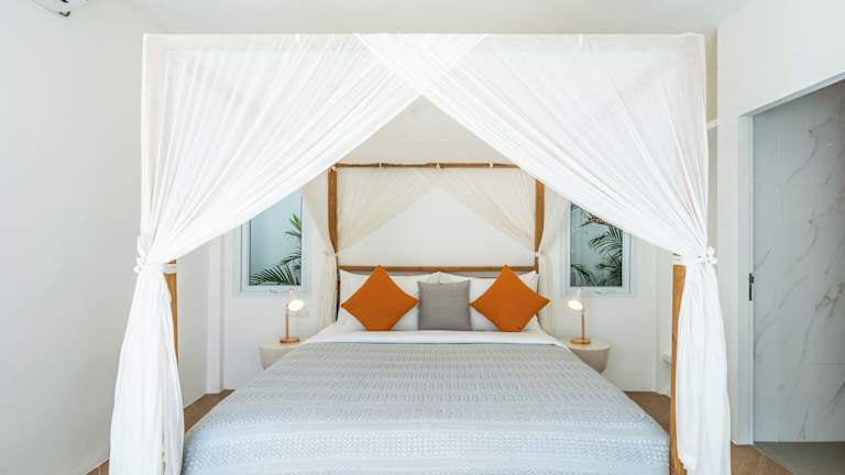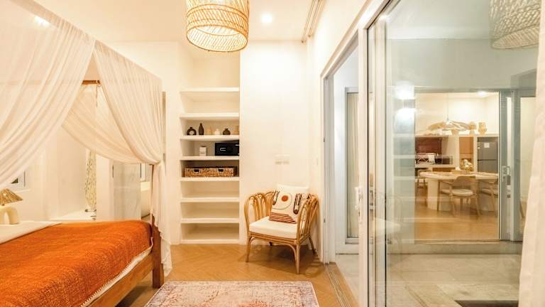 Die Villa ist klimatisiert und besteht aus einem Schlafzimmer, einem Wohnzimmer sowie einer voll ausgestatteten Küche mit Kühlschrank. Zur Ausstattung zählen ein Badezimmer mit Dusche und Haartrockner. Handtücher und Bettwäsche werden bereitgestellt.