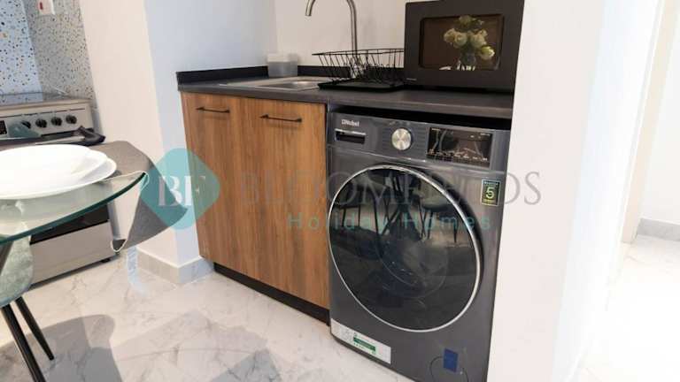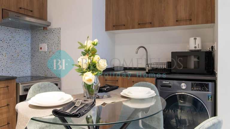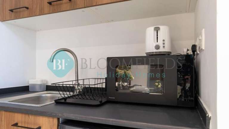 Die Unterkunft beinhaltet ein Wohnzimmer mit Fernseher und eine Küche, die mit Kühlschrank, Mikrowelle und Toaster ausgestattet ist. Zusätzlich steht ein Haartrockner zur Verfügung.