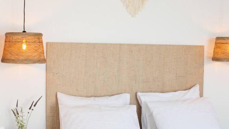 Die klimatisierten Zimmer sind in ansprechenden Blau- und Weißtönen gehalten und ausgestattet mit einem Kühlschrank, einem TV sowie einem eigenen Bad mit Dusche.