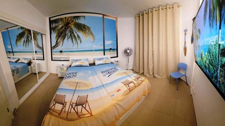 BLUE BAY PARADISE - Beach front apartment with sea view ist eine Unterkunft direkt am Strand, die Übernachtungsmöglichkeiten in einer Ferienwohnung mit einem Außenpool, einem Restaurant und kostenlosem WLAN bietet.