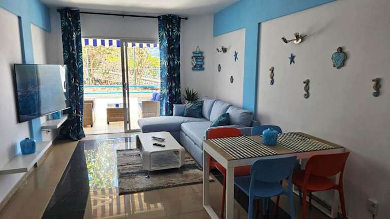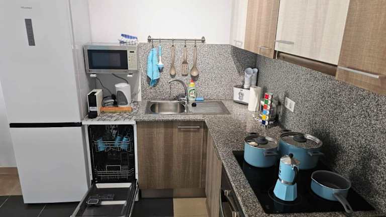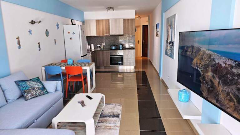 Die Ferienwohnung umfasst 1 Schlafzimmer, ein Wohnzimmer mit Flachbild-TV, eine gut ausgestattete Küche mit Kühlschrank und Geschirrspüler sowie ein Badezimmer mit Badewanne. Zudem gibt es eine Veranda / Patio und eine Terrasse mit Meerblick. Handtücher und Bettwäsche werden bereitgestellt.