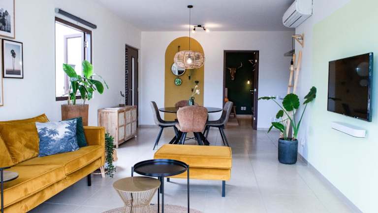 Das klimatisierte Apartment im Blue Bay Resort luxury apartment Golf Vacation Curaçao verfügt über 2 Schlafzimmer, ein Wohnzimmer und eine voll ausgestattete Küche mit Kühlschrank und Kaffeemaschine. Es gibt auch 2 Badezimmer mit Dusche und Haartrockner. Handtücher und Bettwäsche werden gestellt.