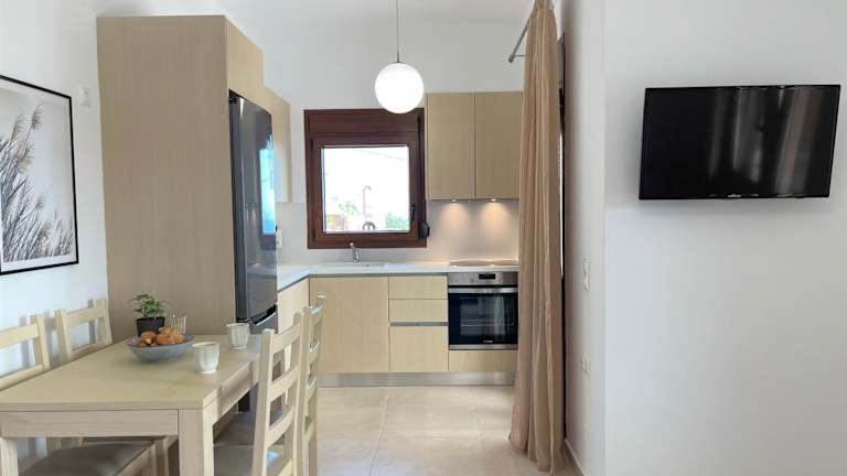 Die Villa verfügt über Klimaanlage, zwei Schlafzimmer, ein Wohnzimmer und eine voll ausgestattete Küche mit Kühlschrank und Kaffeemaschine. Des Weiteren gibt es ein Bad mit Dusche und Haartrockner. Handtücher und Bettwäsche werden bereitgestellt.