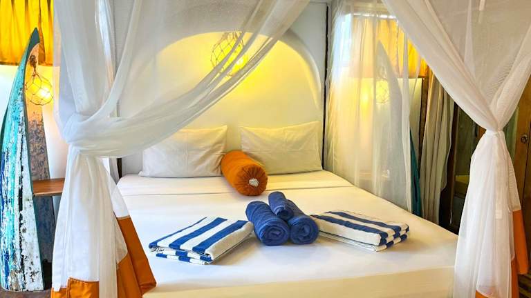 Im Blue Earth Village können Sie nicht nur entspannen, sondern auch aktiv werden. Spielen Sie eine Runde Darts oder erkunden Sie die Umgebung beim Wandern und Radfahren. Der Strand Ibus ist ebenfalls einen Besuch wert und bietet weitere Möglichkeiten zur Entspannung und Erholung.