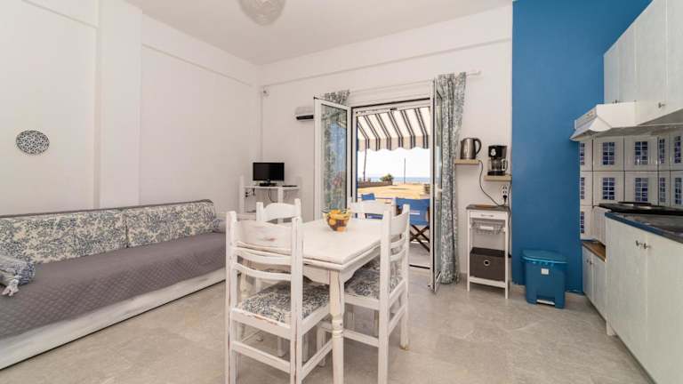 Die Blue Houses Apartments bieten Ihnen komfortable und gut ausgestattete Apartments mit einem Schlafzimmer, einem Wohnzimmer, einer voll ausgestatteten Küche und einem Badezimmer. Genießen Sie Ihren Aufenthalt in einem klimatisierten Apartment mit einem Balkon, von dem aus Sie einen herrlichen Blick auf das Meer genießen können. Handtücher und Bettwäsche werden gestellt, und kostenfreies WLAN steht Ihnen zur Verfügung.