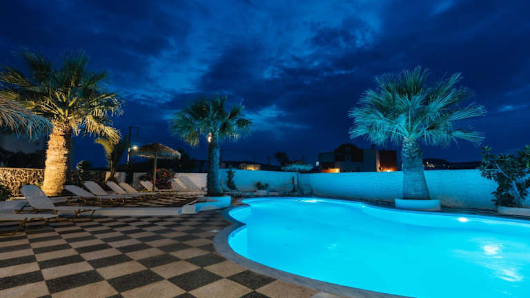 Die Unterkunft befindet sich in Perivolos, ca. 800 m vom Strand und etwa 400 m vom Stadtzentrum entfernt. Weitere Sehenswürdigkeiten wie die Archäologische Stätte Akrotiri sind in einer Distanz von 7,6 km erreichbar. Der Hafen von Santorin liegt 9,1 km entfernt und das Archäologische Museum Thera ist 13 km vom Hotel entfernt.
