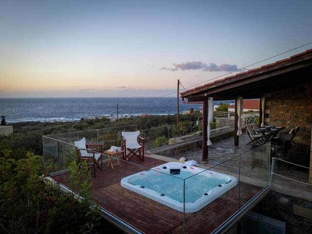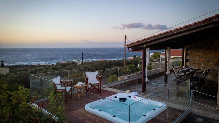 Die Blue Pearl Villa befindet sich in Amigdokefali auf Kreta und bietet eine ruhige und idyllische Lage. Von hier aus haben Sie einen beeindruckenden Blick auf das Mittelmeer und die umliegenden Berge. Genießen Sie die entspannte Atmosphäre und erkunden Sie die natürliche Schönheit der Umgebung. In der Nähe finden Sie auch die charmante Stadt Kissamos, die mit ihrer malerischen Altstadt und den schönen Stränden lockt. Der internationale Flughafen Chania ist gut erreichbar und bietet eine bequeme Anreisemöglichkeit.