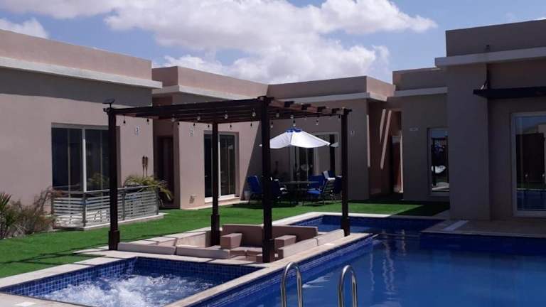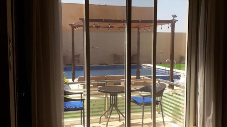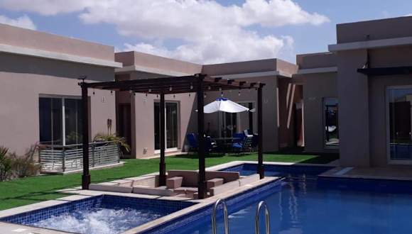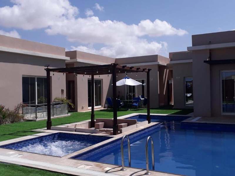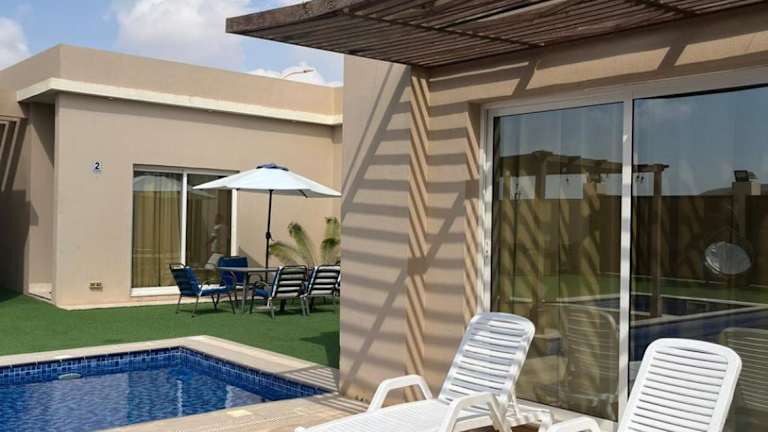 Das Blue Revan Chalet in Salalah bietet Ihnen eine luxuriöse Unterkunft mit atemberaubendem Bergblick. Entspannen Sie sich in diesem Chalet mit eigenem Pool und Garten und genießen Sie die Ruhe und Privatsphäre. Die voll ausgestattete Küche und die zahlreichen Badezimmer sorgen für einen komfortablen Aufenthalt. Lassen Sie sich im Wellnessbereich mit Innenpool und Whirlpool verwöhnen. Die Lage des Chalets ermöglicht es Ihnen, die beeindruckende Sultan-Qabus-Moschee und das faszinierende Wadi Ain Sahalnoot zu besuchen. Der Flughafen Salalah ist ebenfalls gut erreichbar.