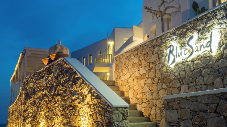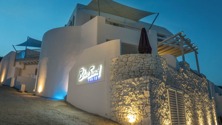 Das Blue Sand Boutique Hotel & Suites weist die traditionelle Architektur der Kykladen auf und bietet Unterkünfte mit Blick auf die Ägäis. Das Hotel bietet kostenfreies WLAN in allen Bereichen und ein ansprechendes Ambiente.