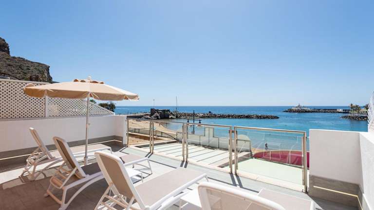 Die Unterkunft befindet sich in Puerto de Mogán, lediglich 10 Meter von der Playa de Mogán entfernt und etwa 10 km vom Golfplatz Anfi Tauro. Der Leuchtturm von Maspalomas ist in 25 km erreichbar, während der Golfplatz Maspalomas 26 km entfernt ist. Das Einkaufszentrum Yumbo Centrum sowie Aqualand Maspalomas liegen ebenfalls 26 km von der Unterkunft entfernt. Der nächste Flughafen, Gran Canaria, befindet sich in 50 km Entfernung.