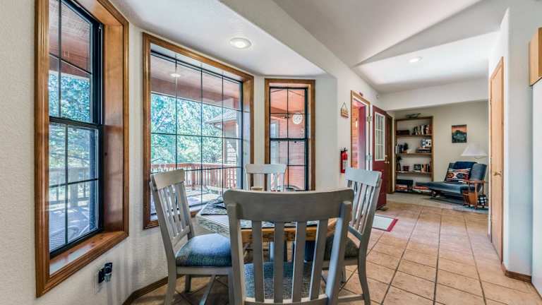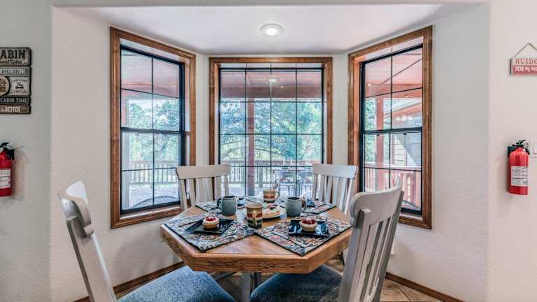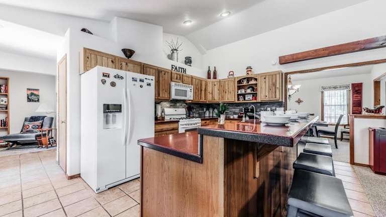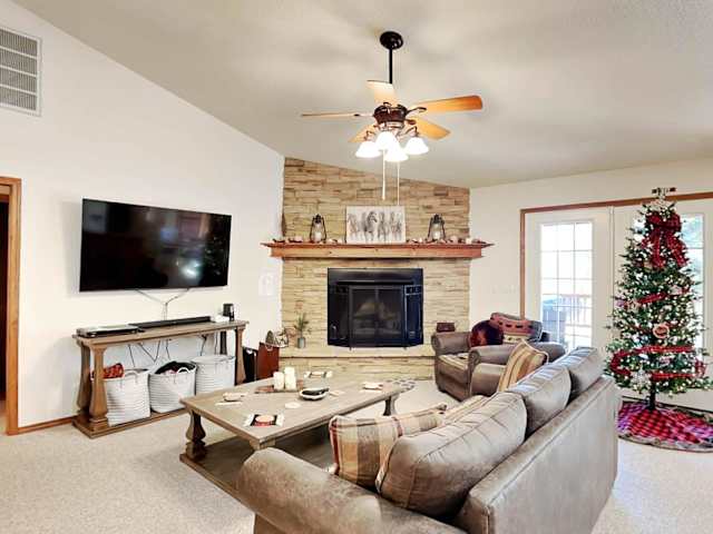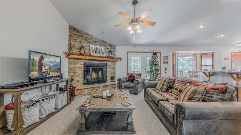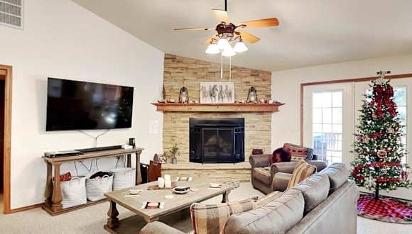 Das Blue Spruce Retreat verfügt über ein klimatisiertes Ferienhaus mit 3 Schlafzimmern, das Platz für eine Familie oder eine Gruppe von Freunden bietet. Das Haus ist geschmackvoll eingerichtet und verfügt über einen gemütlichen Essbereich und eine voll ausgestattete Küche mit modernen Geräten wie einem Kühlschrank und einem Geschirrspüler. Handtücher und Bettwäsche werden gestellt, um Ihren Aufenthalt so angenehm wie möglich zu gestalten.