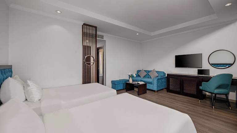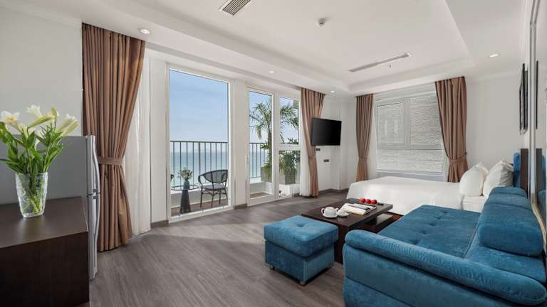 Das BlueSun Danang Beach Hotel ist eine stilvolle Unterkunft mit modernem Design und elegancer Ausstattung. Die Bar bietet eine Auswahl an Cocktails und Getränken, während die großzügige Terrasse einen Blick auf das Meer bietet. Zu den Annehmlichkeiten zählen ein Innenpool, ein Fitnesscenter und ein Whirlpool. WLAN ist im gesamten Hotelbereich kostenfrei verfügbar und die Rezeption ist rund um die Uhr besetzt.