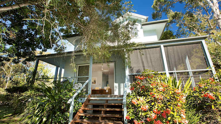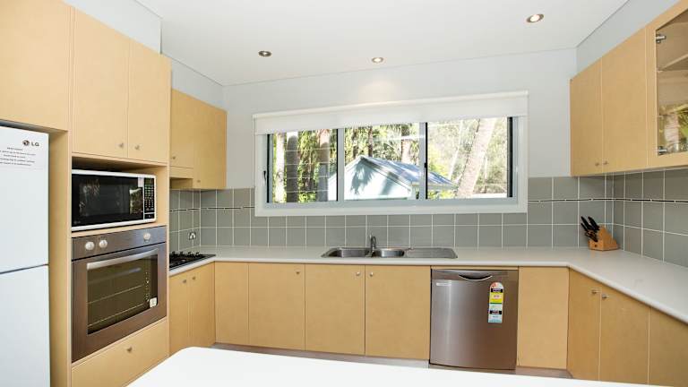 Die zweistöckigen Ferienhäuser im Blueys Retreat bieten geräumige und komfortable Unterkünfte. Jedes Haus verfügt über einen offenen Wohnbereich mit einem Flachbild-TV und einem DVD-Player. Die voll ausgestattete Küche ermöglicht es Ihnen, Ihre eigenen Mahlzeiten zuzubereiten, und in den eigenen Wäschemöglichkeiten können Sie Ihre Kleidung bequem waschen. Überdachte Parkplätze stehen Ihnen ebenfalls zur Verfügung.