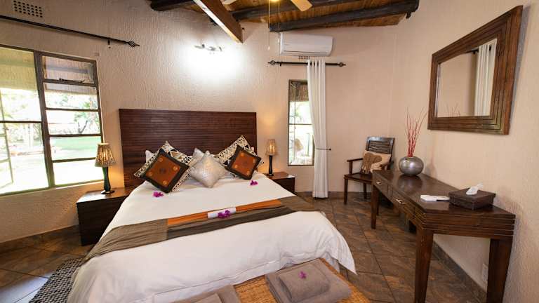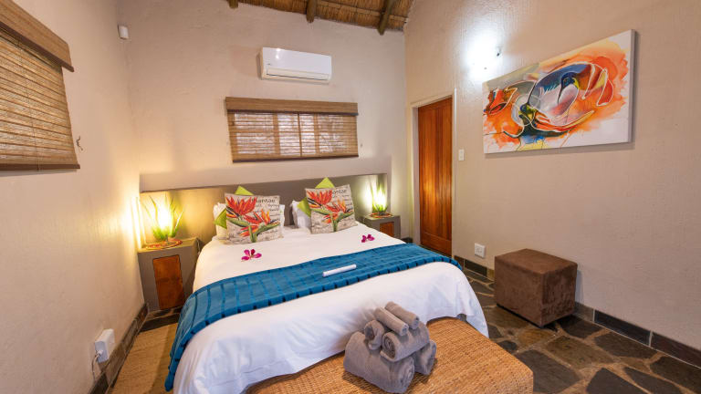 Die Zimmer im Hotel Blyde River Wilderness Lodge sind elegant eingerichtet und verfügen über einen Balkon, der einen herrlichen Blick auf die umliegende Natur bietet. Die Zimmer zur Selbstverpflegung sind mit einer voll ausgestatteten Küche ausgestattet, während die anderen Zimmer einen Sitzbereich und ein eigenes Bad mit Haartrockner haben. Alle Zimmer bieten zudem einen ruhigen Flussblick, an dem Krokodile und Flusspferde vorbeiziehen. Das Naturschutzgebiet beherbergt auch eine Vielzahl von Tieren wie Giraffen, Zebras und Nyalas.