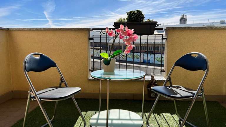 Das Apartment im Bnbook-Volta52 bietet eine moderne und komfortable Ausstattung. Das Wohnzimmer verfügt über einen gemütlichen Sitzbereich und einen Flachbild-TV, ideal zum Entspannen nach einem langen Tag. Die voll ausgestattete Küche bietet alles, was Sie für die Zubereitung Ihrer eigenen Mahlzeiten benötigen, einschließlich Kühlschrank und Backofen. Das Badezimmer ist mit einer Dusche und kostenlosen Pflegeprodukten ausgestattet. Von der Terrasse aus können Sie den Blick auf die Stadt genießen. Kostenloses WLAN und kostenfreie Privatparkplätze stehen Ihnen ebenfalls zur Verfügung.
