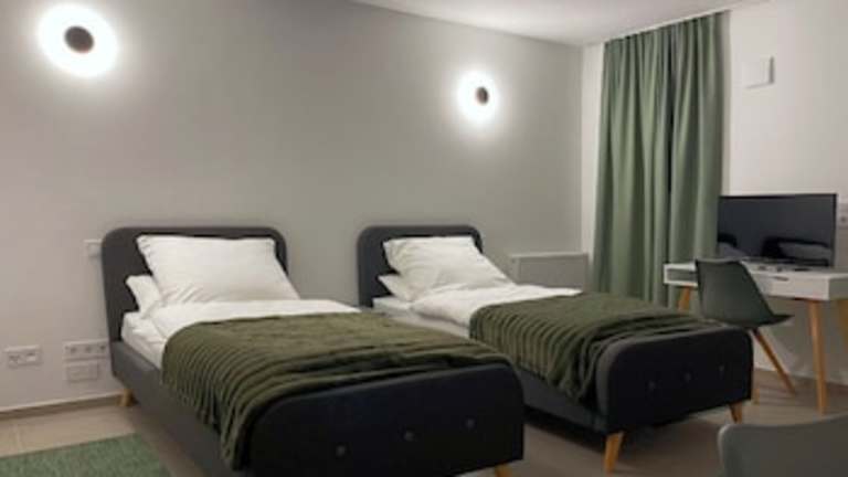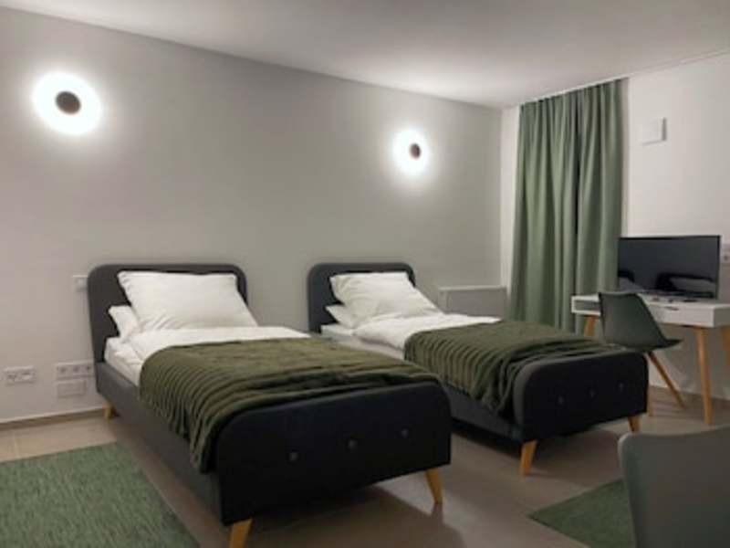 Die Unterkunft bietet Zimmer mit einer Küchenzeile, einem Flachbild-TV mit Satellitenkanälen und einem eigenen Badezimmer, das über eine Dusche und einen Haartrockner verfügt.